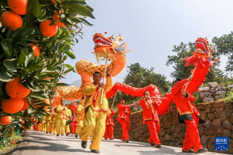 3月11日,湖北省宜昌市秭歸縣歸州鎮(zhèn)萬古寺村村民在進(jìn)行舞龍巡游。