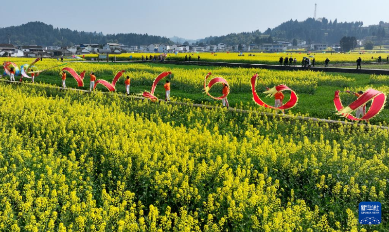 3月11日,在四川省南充市蓬安縣睦壩鎮(zhèn)武勝村,人們?cè)谟筒嘶êV形璨蕩?無人機(jī)照片)。