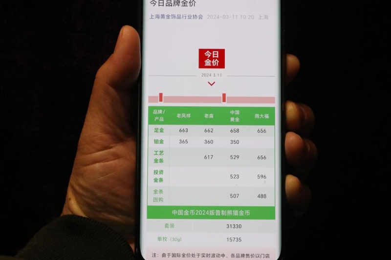 11日,上海黃金飾品行業(yè)協(xié)會整理的上海主要金店黃金制品報價。新華社記者方喆 攝