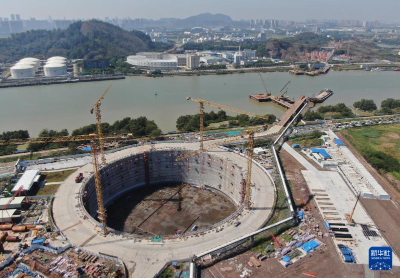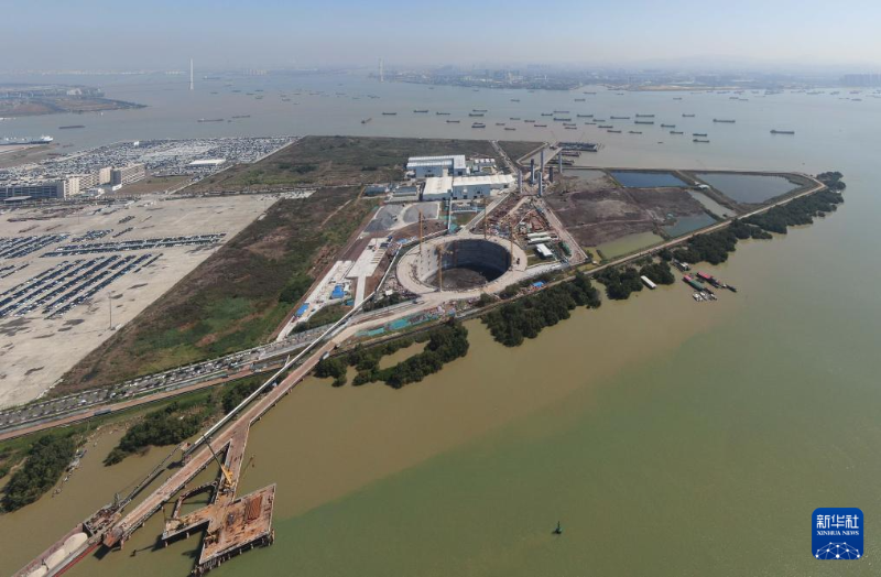 這是獅子洋大橋西錨碇施工現(xiàn)場(3月12日攝,無人機照片)。