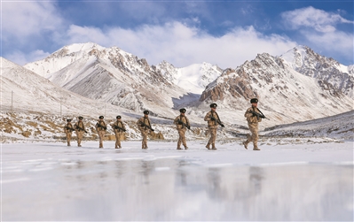 連日來,駐守帕米爾高原的新疆軍區(qū)某邊防團(tuán)卡拉其古邊防連官兵翻達(dá)坂、爬雪山、蹚冰河,巡邏在邊防線上。姬文志攝