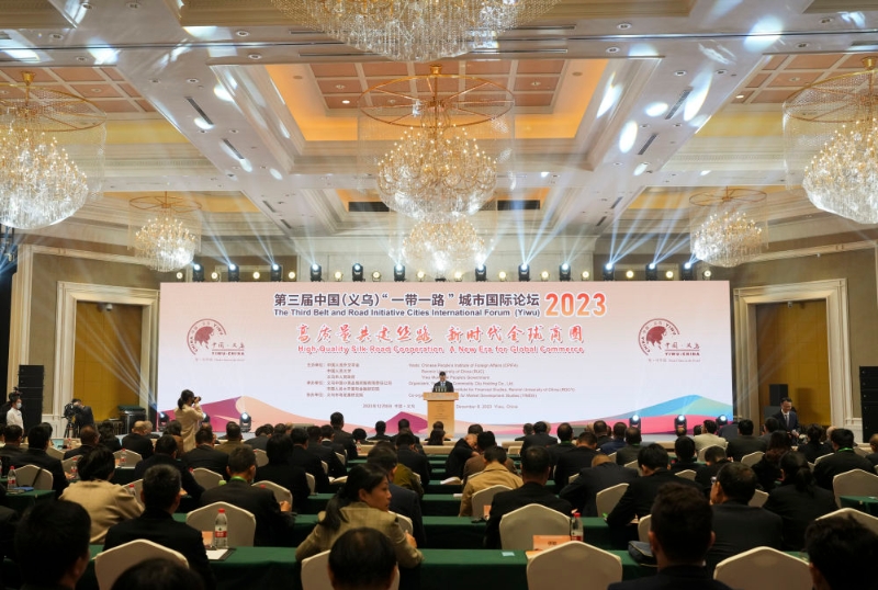 這是2023年12月8日在浙江省義烏市拍攝的第三屆中國(guó)(義烏)“一帶一路”城市國(guó)際論壇現(xiàn)場(chǎng)。新華社記者 翁忻旸 攝