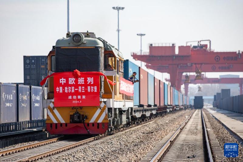 3月14日,中歐班列(哈爾濱——蒂爾堡)準備從哈爾濱國際集裝箱中心站出發(fā)。