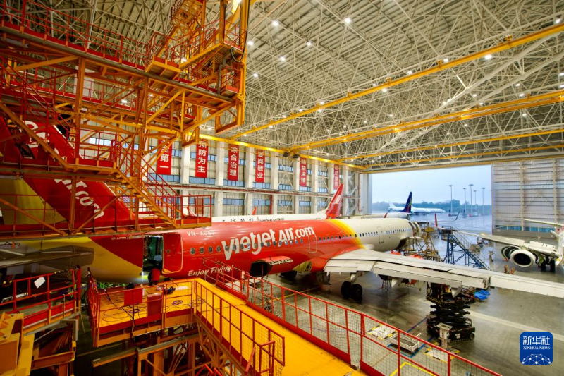 3月11日,在海南一站式飛機(jī)維修產(chǎn)業(yè)基地定檢機(jī)庫(kù),海航技術(shù)旗下大新華飛機(jī)維修服務(wù)有限公司的工作人員對(duì)進(jìn)境飛機(jī)進(jìn)行檢修作業(yè)。