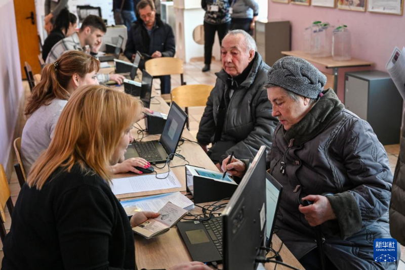 3月15日,當(dāng)?shù)鼐用裨诙砹_斯符拉迪沃斯托克登記參加總統(tǒng)選舉投票。