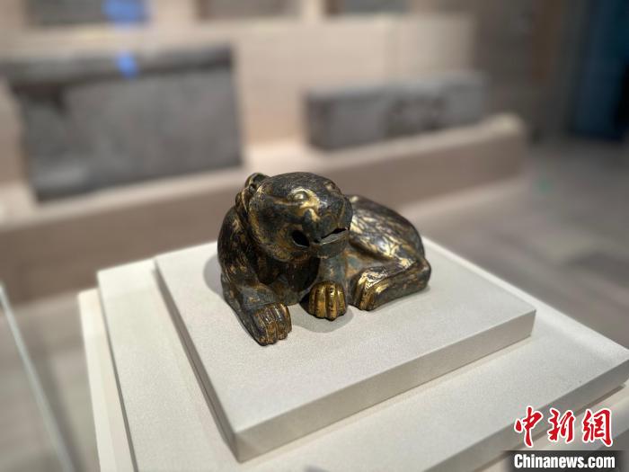 憨態(tài)可掬的西漢虎形鎏金銅鎮(zhèn)則是首次“入住”常設(shè)展廳。這件虎鎮(zhèn)鑄工精湛,虎作卷臥狀,昂首張口,脖頸戴裝飾貝紋的項(xiàng)圈,通體鎏金,是一件珍貴的漢代工藝雕塑杰作。據(jù)師若予介紹,在秦漢及更早時期,人們席地而坐,為避免起身與落座時,因折卷席角、牽掛衣飾而影響儀態(tài),出現(xiàn)了壓住席子四角的席鎮(zhèn)?!巴ㄟ^這件虎鎮(zhèn),觀眾可以了解到中國古人的生活是很優(yōu)雅的?!?完)