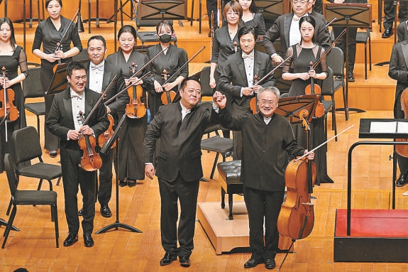 王健的琴聲極富感染力,音樂急促緊張時(shí),他躬身投入,將大提琴緊緊環(huán)抱,旋律舒緩時(shí),琴弓在弦上盈滿悠長(zhǎng)的線條。一曲奏畢,全場(chǎng)掌聲如雷,王健幾次致謝,喝彩更盛。在極致盡興的樂音里,肖斯塔科維奇寫于半百之年的人生感懷、特殊年代留下的波瀾與烙印穿越時(shí)空,長(zhǎng)久地震撼了每一位聽眾。