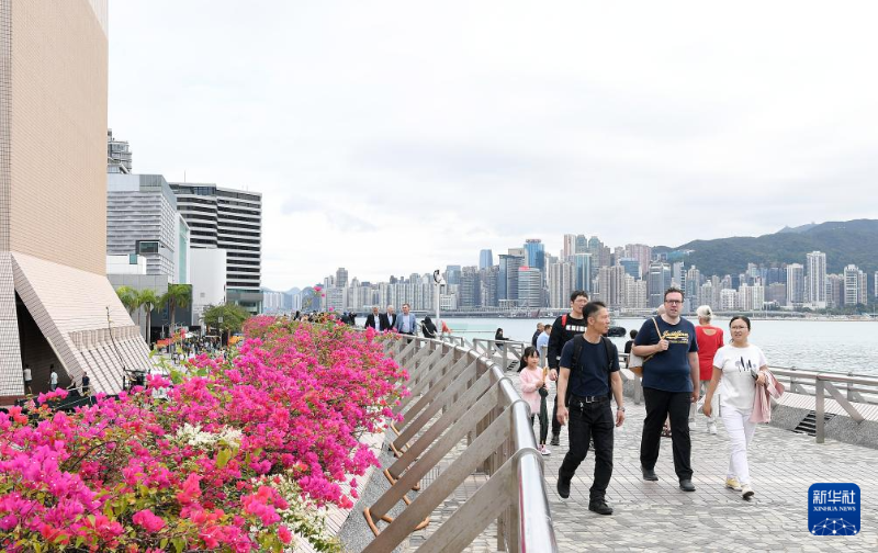 2024年3月19日,游客在香港尖沙咀游覽。新華社記者 陳鐸 攝