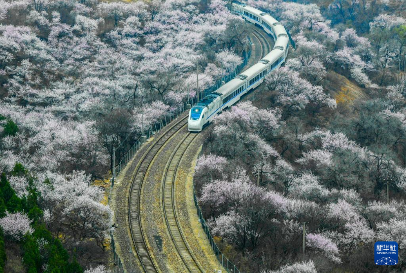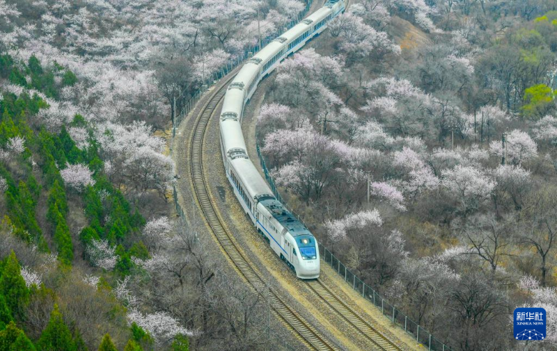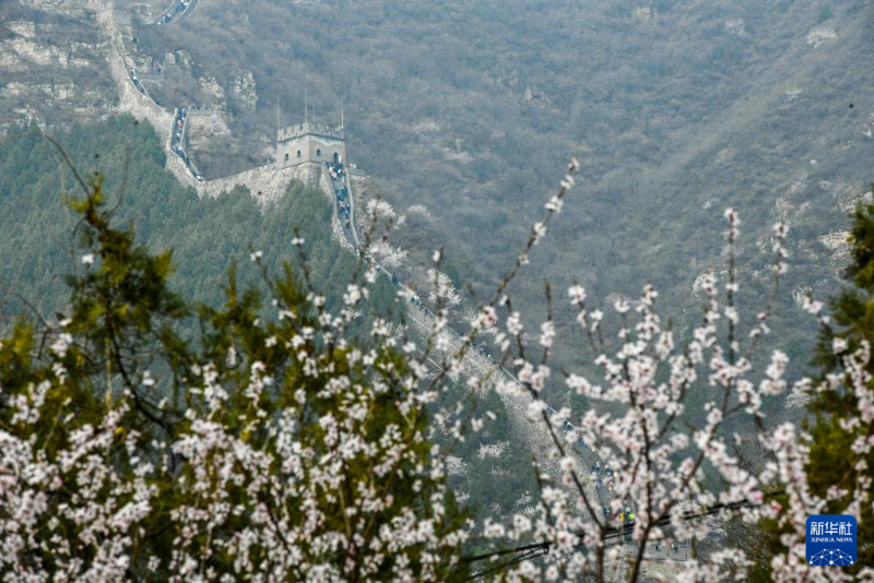 近日,北京市居庸關(guān)長城景區(qū)山桃花開,花海中的列車、長城上的游客與春景,勾勒出一幅幅美麗的畫卷。