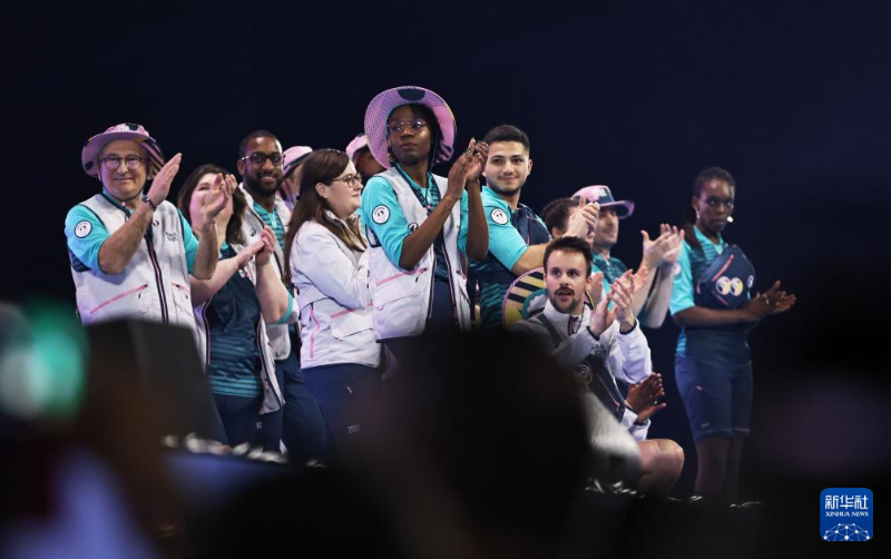 當(dāng)日,巴黎奧運會志愿者大會在法國巴黎附近楠泰爾的拉德芳斯體育館舉行,巴黎奧運會志愿者制服在會上正式亮相。