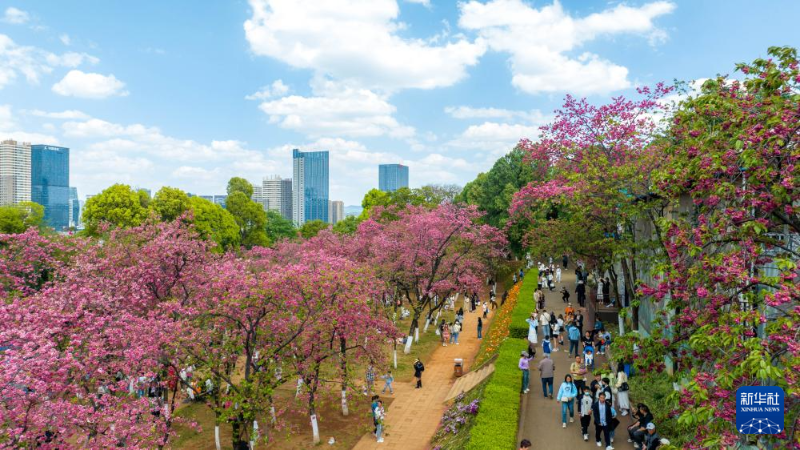 近日,云南昆明圓通山公園的櫻花進(jìn)入盛花期,吸引眾多市民和游客前來觀花賞景,樂享春日時光。