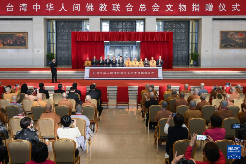 3月25日,由臺灣中華人間佛教聯(lián)合總會捐贈的文物(部分)在儀式現(xiàn)場展示。臺灣中華人間佛教聯(lián)合總會捐贈文物儀式25日在北京中國國家博物館舉辦。