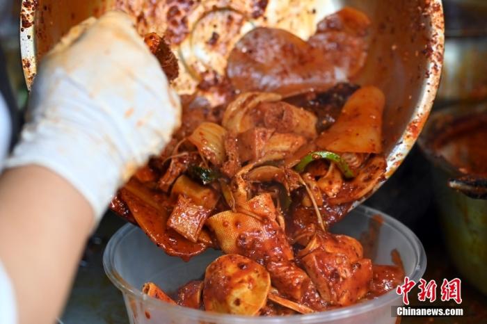3月14日,甘肅天水,商家正在制作麻辣燙。 中新社記者 九美旦增 攝