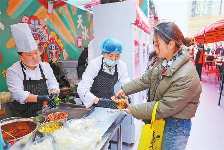 天水“麻辣燙一條街”吸引游客“打卡”。新甘肅·甘肅日?qǐng)?bào)記者 馮樂凱