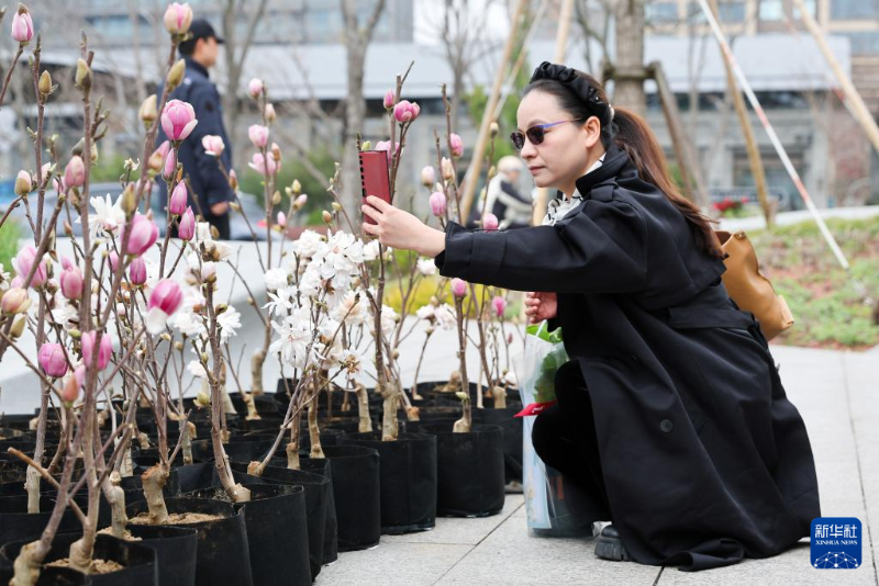 3月26日,市民在現(xiàn)場(chǎng)拍攝展出的白玉蘭盆栽。