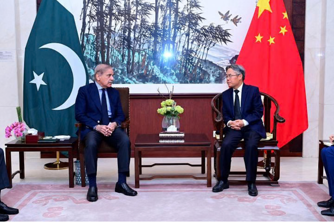 巴基斯坦總理辦公室發(fā)布的照片顯示,巴基斯坦總理謝赫巴茲·謝里夫(左)在中國(guó)駐伊斯蘭堡大使館就3月26日發(fā)生的自殺式襲擊同中國(guó)大使姜再冬舉行會(huì)談。(圖源:法新社)