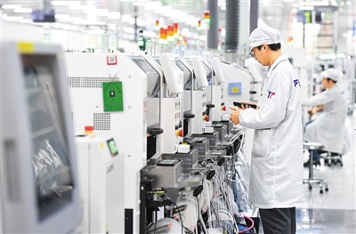 3月11日,在江西省豐城市零碳工廠——佛吉亞歌樂電子(豐城)有限公司,工作人員在生產(chǎn)車間趕制汽車電子產(chǎn)品。周 亮攝(人民圖片)