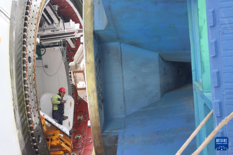 3月27日,在上海市崇明區(qū),“領航號”盾構機刀盤準備下井。