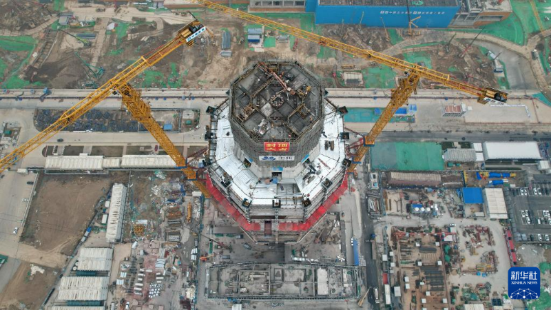 3月27日拍攝的中國中化大廈建設(shè)現(xiàn)場(無人機(jī)照片)。