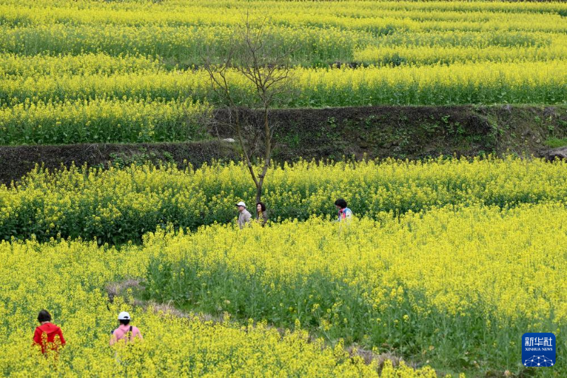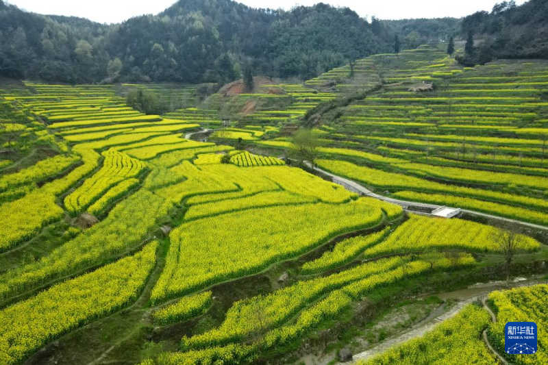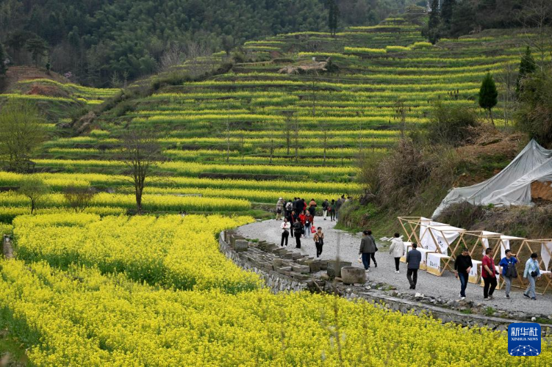 眼下,安徽省黃山市徽州區(qū)呈坎鎮(zhèn)靈山村的梯田油菜迎來盛花期,層層疊疊的梯田上綻放的油菜花猶如金色波浪,吸引各地游客前來賞花踏青。