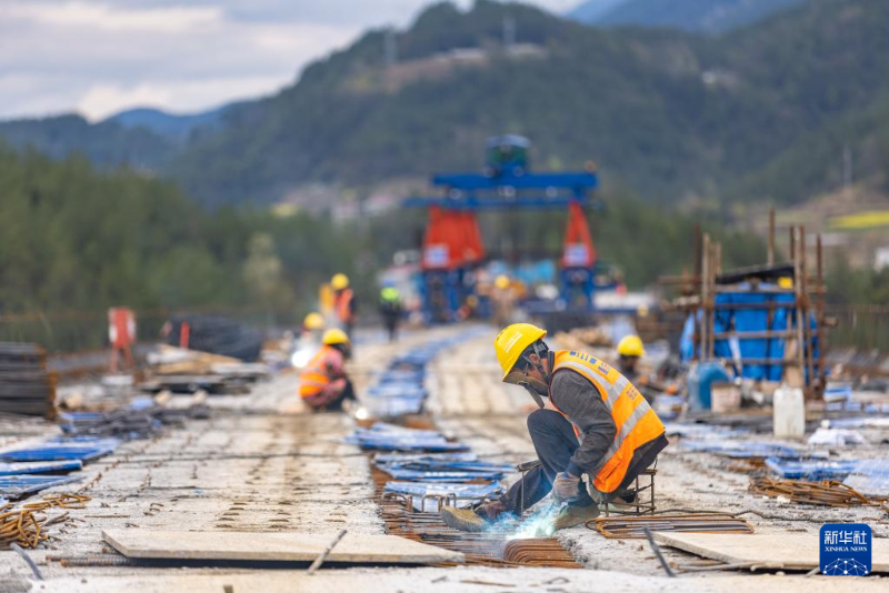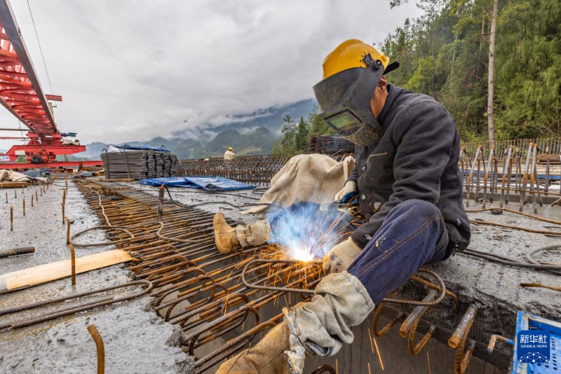 ??3月27日,在重慶巨能中環(huán)建設(shè)承建的巫云開(kāi)高速土建A3標(biāo)段,施工人員進(jìn)行焊接作業(yè)。