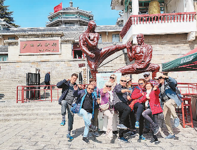 斯洛伐克游客在河南省少林武術(shù)館參觀。