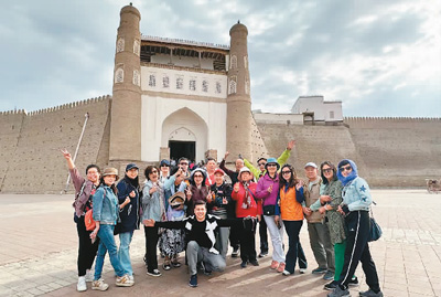 中國(guó)游客在烏茲別克斯坦布哈拉古城游覽。