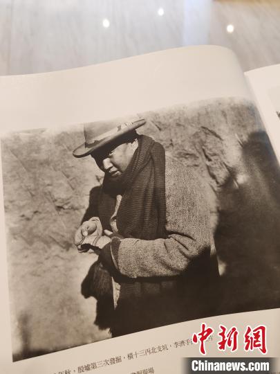 臺灣“中研院”史語所歷史文物陳列館展陳書籍中的李濟照片。楊程晨 攝