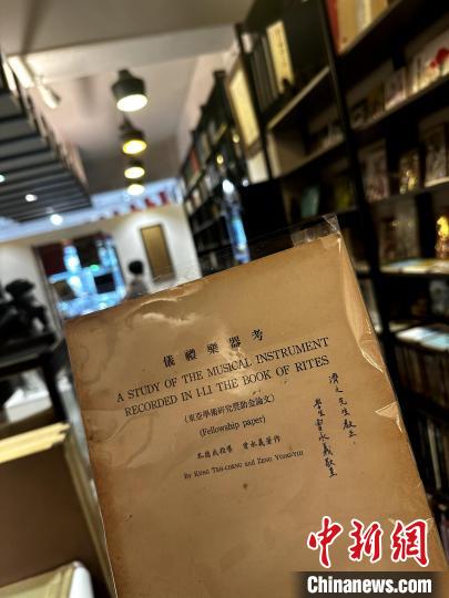 記者來到知名舊書店“舊香居”,工作人員陳學祈從手邊拿出一本已泛黃起皺的獎助金論文《儀禮樂器考》,作者是臺灣知名戲曲及民俗學者曾永義。他在封皮上寫下:濟之先生教正,學生曾永義敬呈。
