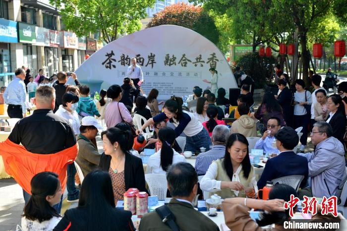 中新社福州3月29日電 (記者 閆旭)沖一壺臺(tái)灣高山茶,茶商茶友共聚,細(xì)品漫談茶事;伴著悠揚(yáng)輕緩的樂(lè)聲,茶藝師的巧手在茶席間流轉(zhuǎn)……29日,“茶韻兩岸 融合共香”活動(dòng)在福州五里亭社區(qū)尚東區(qū)茶城廣場(chǎng)舉行。