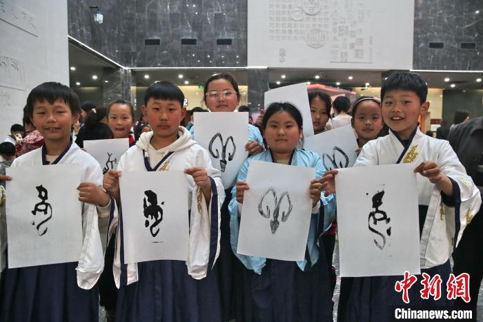 孩子們展示十二生肖甲骨文雕版印刷作品。高珊珊 攝