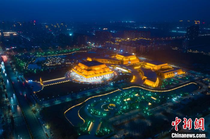 空中俯瞰開(kāi)放夜游活動(dòng)的中國(guó)文字博物館。冀坤 攝