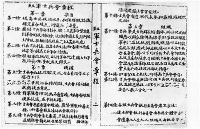 上圖:1930年夏,紅軍制定的《紅軍士兵會章程》。《解放軍畫報》資料室供圖