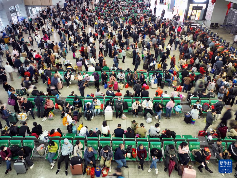 4月6日,旅客在鐵路湖南衡陽(yáng)東站候車室候車(無(wú)人機(jī)照片)。