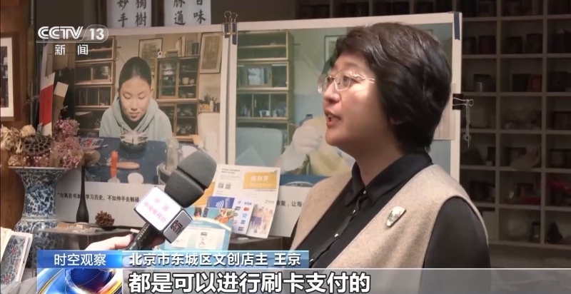 北京市東城區(qū)文創(chuàng)店主 王京:原來(lái)我們主要能刷兩類卡,維薩、萬(wàn)事達(dá)?,F(xiàn)在增加到了5個(gè)卡種,包括JCB(日本信用卡)、美國(guó)運(yùn)通,都是可以進(jìn)行刷卡支付的。