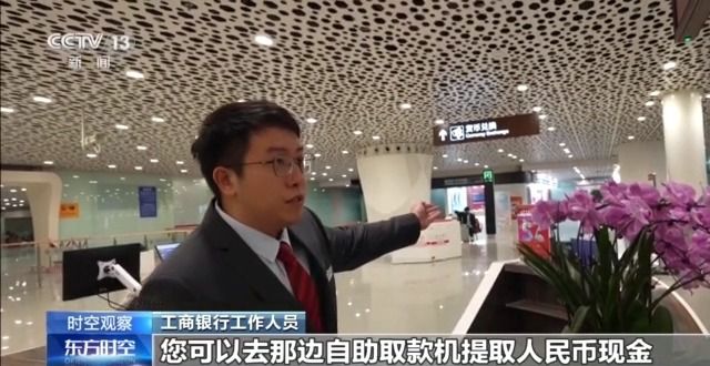 工商銀行工作人員:如果您帶有銀行卡,您可以去那邊自助取款機(jī)提取人民幣現(xiàn)金;如果您攜帶的是外幣現(xiàn)鈔,在這邊設(shè)有貨幣兌換點(diǎn)。