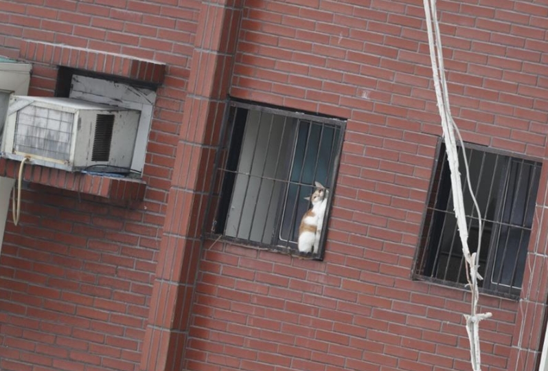 天王星大樓倒塌,有些居民來不及將家中寵物帶出,目前有數(shù)只雞在陽臺(tái)上躲避怪手鋼牙,另外還有5只貓?jiān)诖髽抢?,包括康老師的愛貓位?樓,還有8樓2戶住戶分別有3只貓和1只貓。