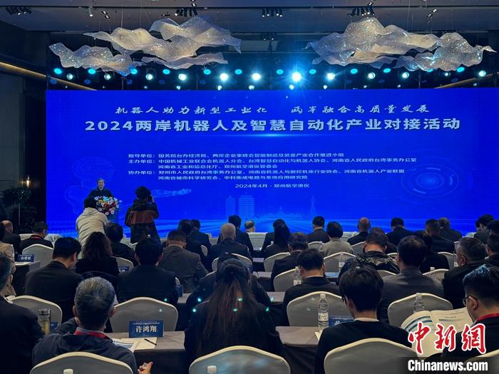 4月9日,2024兩岸機器人及智慧自動化產(chǎn)業(yè)對接活動在河南鄭州舉行,兩岸智能領域簽約了6個項目。圖為活動現(xiàn)場。 中新社記者 闞力 攝