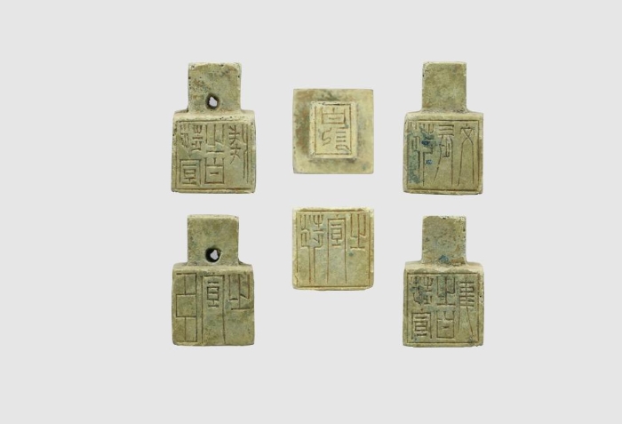 鎮(zhèn)江市環(huán)山路六朝墓葬6號(hào)墓中發(fā)現(xiàn)的青銅六面印。