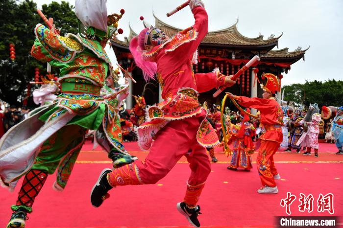 4月9日,甲辰年“天下媽祖回娘家”啟動(dòng)儀式在福建省莆田市湄洲島舉行,圖為英歌舞表演助興。中新社記者 呂明 攝