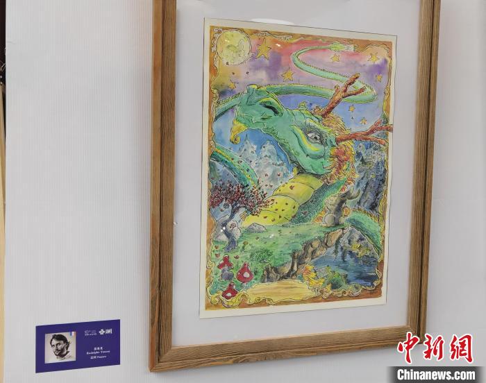 來自法國的藝術(shù)家藍(lán)浚龍?jiān)谥袊钜延?3年。當(dāng)日其展出的三幅作品中,有一幅獨(dú)具特色的中國龍繪畫。他介紹,這是自己特意為中國新年所作之畫。每年他都會為中國新年做一件藝術(shù)品,并將其送給親朋好友,以表祝福。