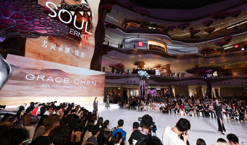 4月13日,在??趪?guó)際免稅城消博會(huì)時(shí)裝周主秀場(chǎng),模特在展示時(shí)裝作品。新華社記者楊冠宇 攝
