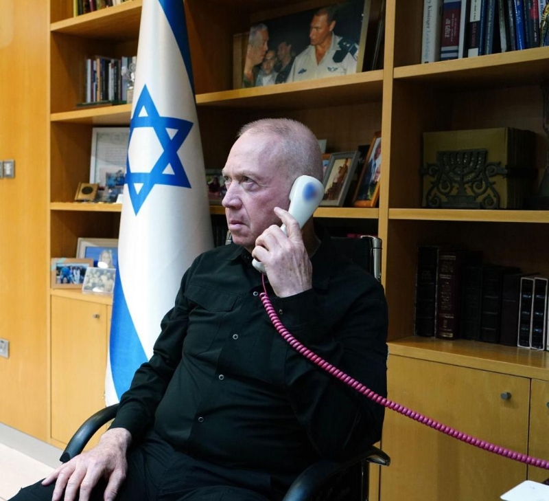 這張以色列國(guó)防部4月14日發(fā)布的照片顯示,以色列國(guó)防部長(zhǎng)加蘭特與美國(guó)國(guó)防部長(zhǎng)奧斯汀通電話。新華社發(fā)(以色列國(guó)防部供圖)