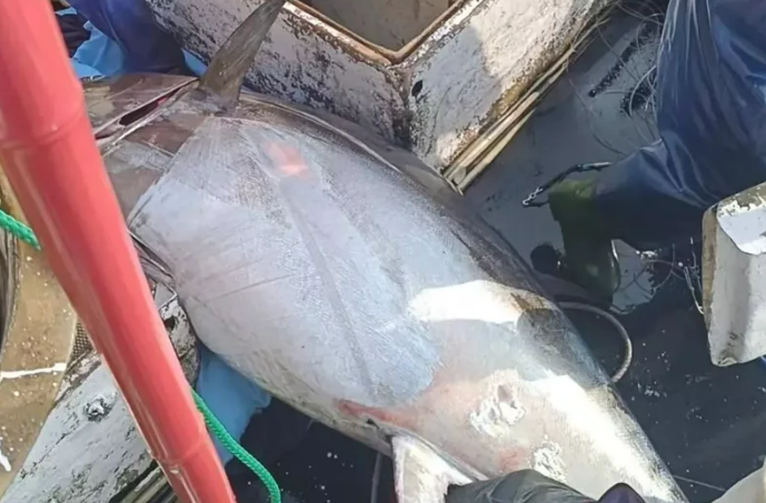 華夏經(jīng)緯網(wǎng)4月15日訊:據(jù)臺(tái)灣“中央社”報(bào)道,宜蘭縣蘇澳籍漁船“再發(fā)668號(hào)”昨天捕獲一尾大黑鮪,今天秤重為269公斤,身長(zhǎng)253公分,經(jīng)當(dāng)?shù)貪O會(huì)鑒定符合“蘇澳第一鮪”資格,也是“全臺(tái)第一鮪”,17日將拍賣。
