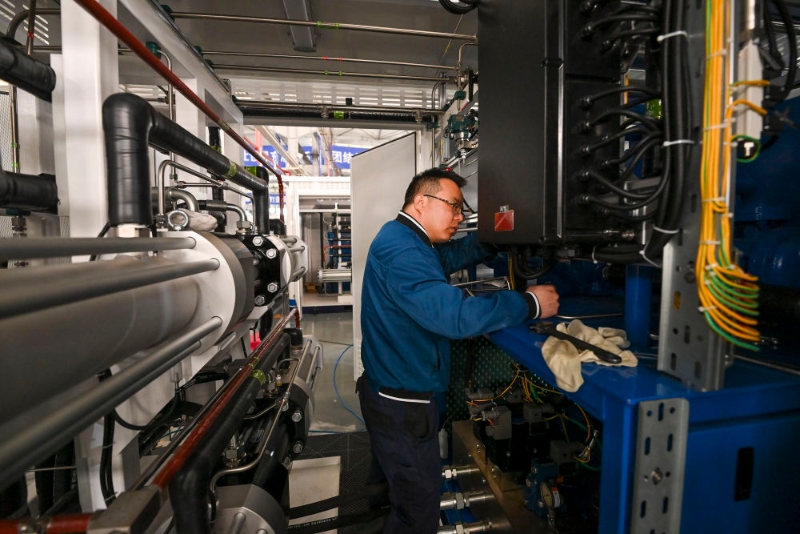 在位于山西省長(zhǎng)治市高新技術(shù)產(chǎn)業(yè)開(kāi)發(fā)區(qū)科技工業(yè)園的一家公司內(nèi),工作人員在調(diào)試氫能設(shè)備(4月2日攝)。新華社記者 楊晨光 攝