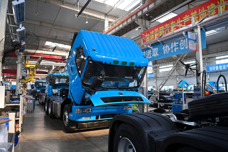 “自2022年6月首批甲醇重卡下線以來(lái),企業(yè)生產(chǎn)訂單源源不斷,去年完成訂單約3000臺(tái),銷(xiāo)往全國(guó)10多個(gè)省份?!奔h(yuǎn)程新能源商用車(chē)集團(tuán)醇?xì)渖鷳B(tài)公司公共關(guān)系總監(jiān)王軍說(shuō),目前生產(chǎn)線每年可以生產(chǎn)甲醇重卡8000輛到1萬(wàn)輛,二期項(xiàng)目投產(chǎn)后,產(chǎn)能將達(dá)到每年5萬(wàn)輛。