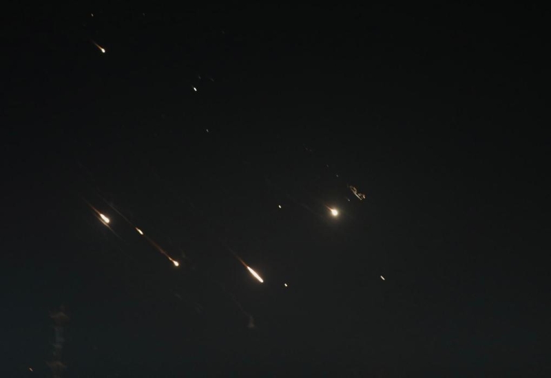這是4月14日凌晨在耶路撒冷上空拍攝的以色列“鐵穹”防空系統(tǒng)啟動攔截的畫面。新華社發(fā)(賈馬爾·阿瓦德攝)