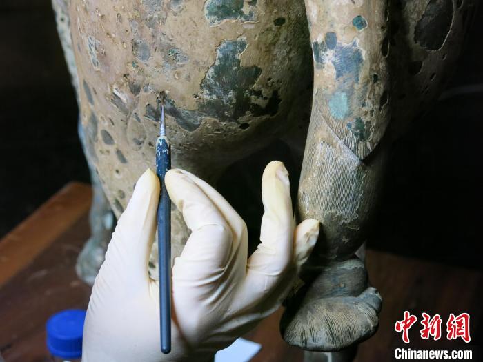 據(jù)介紹,文物保護(hù)工作者對(duì)一號(hào)銅車(chē)馬進(jìn)行了系統(tǒng)全面及科學(xué)的保養(yǎng)維護(hù),以保障其在包裝、運(yùn)輸和展陳中的穩(wěn)定和安全,通過(guò)多種技術(shù)手段對(duì)其進(jìn)行科學(xué)認(rèn)知,并以此為依據(jù)進(jìn)行了諸如粘接、回貼、除銹等一系列保養(yǎng)維護(hù)操作。