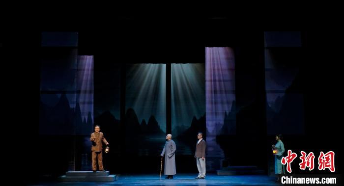 開(kāi)幕式演出之始,西南劇展主要發(fā)起人歐陽(yáng)予倩的扮演者提燈立于舞臺(tái)上,在桂林山水中娓娓道來(lái)西南劇展的誕生歷史,拉開(kāi)了開(kāi)幕式演出的帷幕。整場(chǎng)演出融合了話(huà)劇、戲曲、歌舞等多種表演元素,本次展演參演話(huà)劇《龍隱居》《孔子》《東湖旅店》等也以片段形式在開(kāi)幕式上精彩亮相。