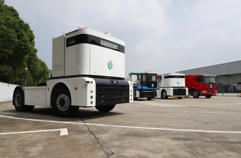 一輛西井科技的無人駕駛重卡Q-Truck(前)在位于上海的無人駕駛商用車聯(lián)合實驗室場地上進(jìn)行動態(tài)測試(2023年9月26日攝)。 新華社記者 方喆 攝